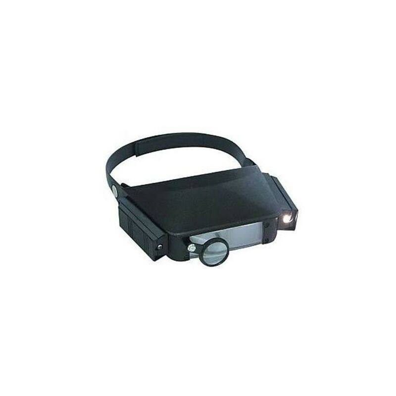 Lente d'ingrandimento con illuminazioe. Adatta per artigiani, collezionisti ed artisti. Fascia in velcro regolabile, 50-65 cm di circonferenza testa anche per portatori di occhiali. Lenti in acrilico di alta qualità. Batterie 4x1,5V (non incluse)