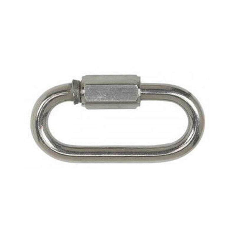 Maglia rapida o anello di giunzione per catena 10 mm zincata. In acciaio zincato con vite di chiusura a rullino. Carico di lavoro: 250 Kg. Carico di rottura: 1000 Kg.