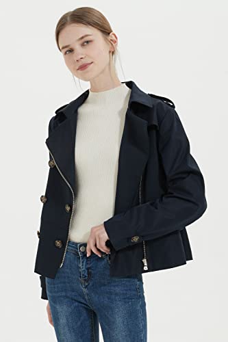 OROLAY Donna Cappotto Trench Corto Doppio Petto Giacca Slim Resistente all'Acqua Nero XL