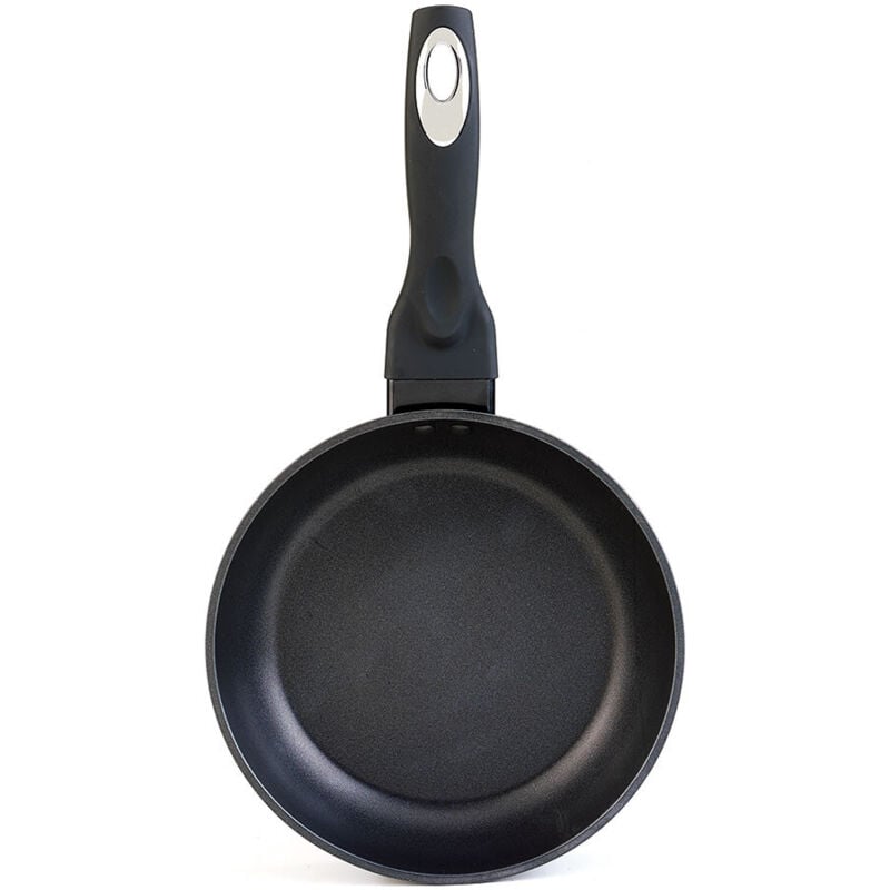 Padella de in alluminio forgiato ø30mx5,5cm inducta ecologica oroley.3 strati 5mm. adatta all'induzione. resistente e leggera. cuoce riducendo il uso de oli o grassi. leggera conantihaderente ecologica liberade pfoa.mango tacto soft touch.