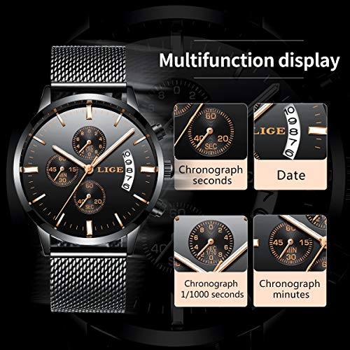 Orologi,Orologio da uomo,orologio classico,Orologio in acciaio inox nero, Orologio casual e lussuoso, orologio resistente all'acqua, orologio da polso al quarzo multifunzione