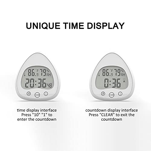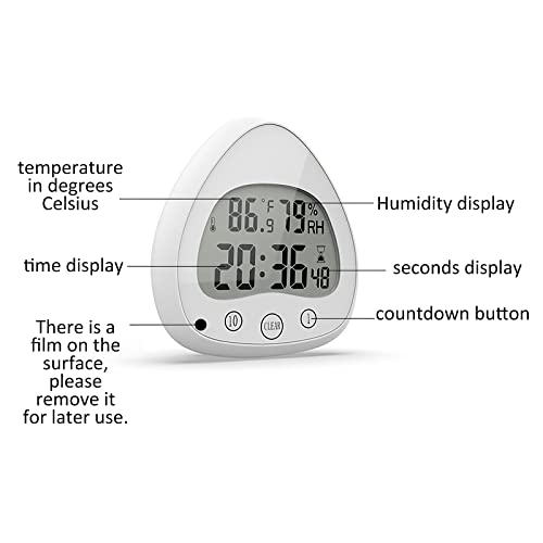 ✔ 【Allarme orologio da doccia 4 in 1 】: ampio schermo LCD può visualizzare tempo, °C/°F temperatura, umidità, formato 12/24 ore, allarme e conto alla rovescia. Intervallo di temperatura è 0 ° C - 50 ° C - 150 ° F. La gamma dell'igrometro è 15%-95%, aggiorna la temperatura corrente e l'umidità nel tempo. La clessidra (Icona) lampeggia in basso a destra dell'angolo.