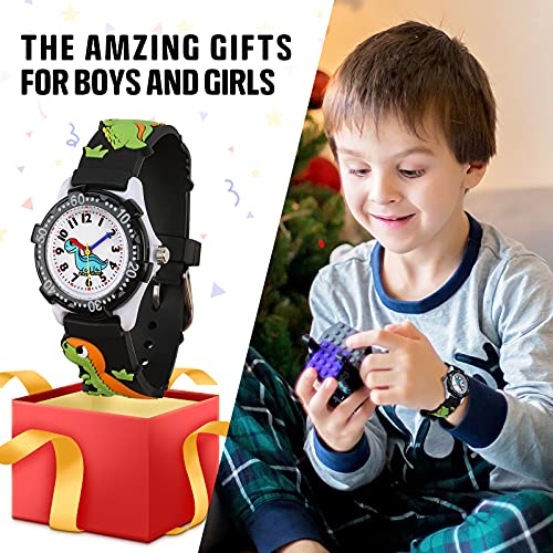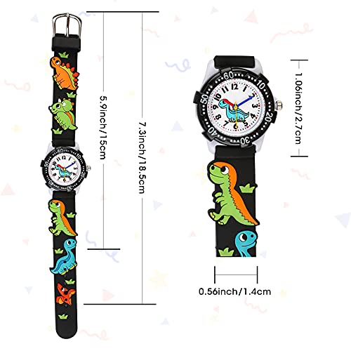 Orologio Bambini Vinmori,Impermeabile 3D Sveglio del Fumetto Orologio da Quarzo Regalo per Bambini Ragazzi e Ragazze Dinosauro nero
