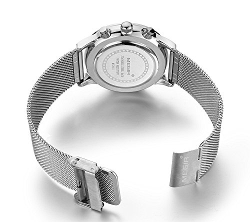 Vetro in cristallo minerale finestra quadrante, cassa in lega e retro in acciaio inossidabile, acciaio INOX maglia fascia