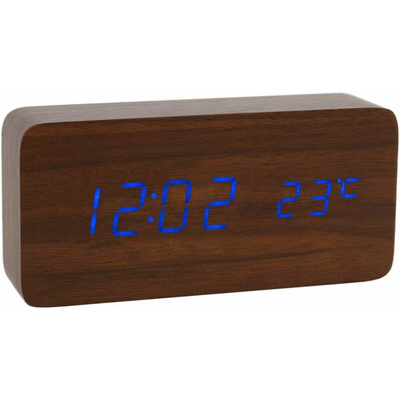 Funzione Funzione sveglia digitale. Ti permette di alzarti in orario. - Visualizzazione dell'ora e della temperatura e funzione di controllo vocale. - La nostra sveglia digitale in legno si abbina perfettamente a qualsiasi arredamento da ufficio o di una casa moderna. p> -La nostra sveglia digitale alimentata tramite cavo USB (incluso) o 4 batterie AAA (non incluse) Materiale: MDF + legno Colore del legno: marrone/giallo /Nero Colore carattere: Bianco/Rosso/Blu Sensore audio: On(00:sd)/Off(-:sd) Dimensioni: 6x2 .8x1.6 pollici (15 x 7 x 4) Peso netto: 11 once Nota: questa sveglia non è ricaricabile < /p> Contenuto della confezione 1 x sveglia digitale 1 x manuale utente 1 x cavo di ricarica USB