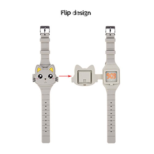 Orologio a LED digitale per ragazzi, bambini e giovani, cinturino in silicone, da polso, regalo - forma del gatto