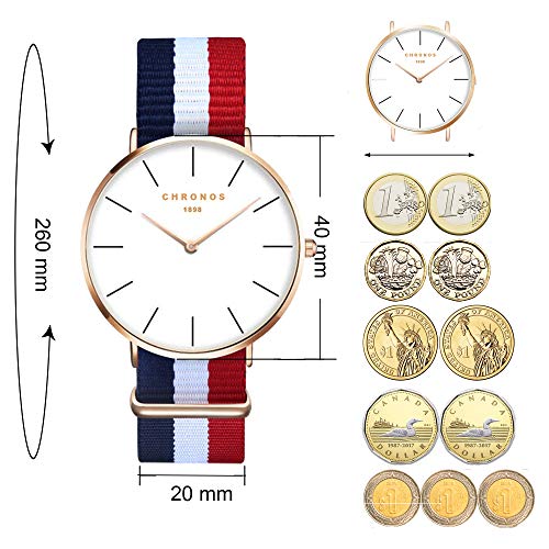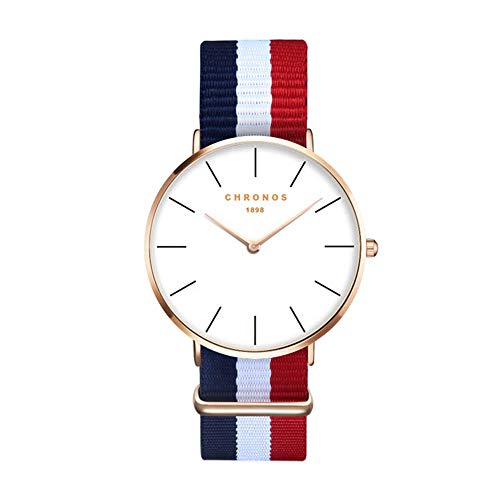 Orologio Donna da Polso Semplice Striscia con Cinturino in Nylon Rosso Bianco Blu