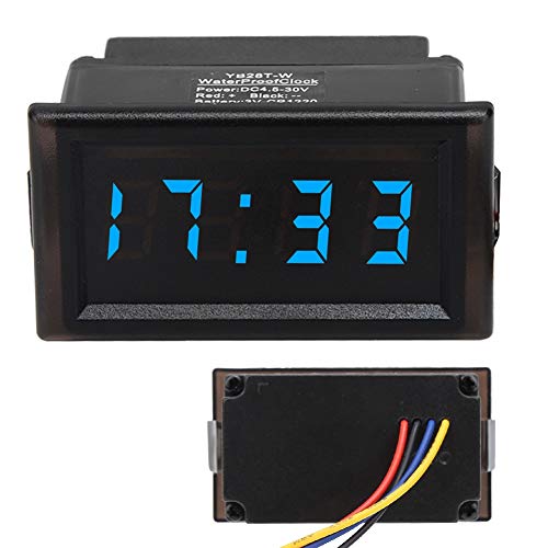 Orologio elettronico per auto Kuuleyn, DC4.5V-30V Display digitale a LED antipolvere impermeabile Orologio elettronico per auto(Blu)