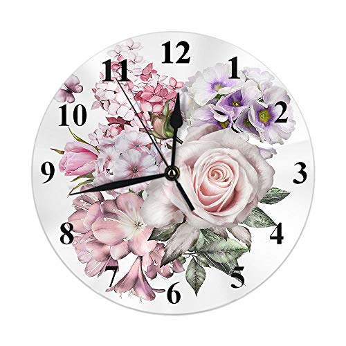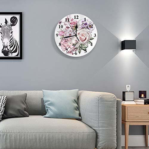 Orologio floreale Acquerello Rosa Rosa Fiore Foglie verdi per matrimonio Orologio da parete rotondo 10 pollici Orologio da appendere silenzioso senza ticchettio per la decorazione domestica Soggiorno