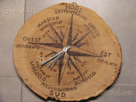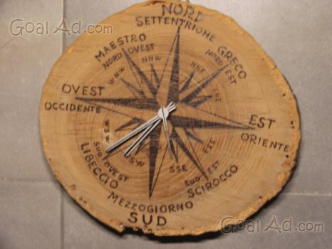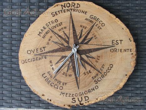 Orologio da parete in legno totalmente fatto mano funzionante pezzo UNICOdisegno a fuoco ROSA DEI VENTI 20 esclusa spedizione