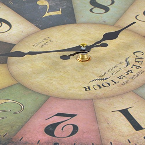 Orologio da muro - Cafe Tour - Silenzioso orologio da cucina in legno con grande quadrante in MDF, Orologio retro con design shabby chic alla moda con meccanismo silenzioso al quarzo, Ø: 32 cm