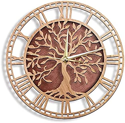 Orologio da parete Albero della vita Orologio da parete in legno Stile fattoria Albero genealogico Orologio silenzioso Decorazioni per la casa Orologio da parete con taglio laser Regalo di inaugurazio