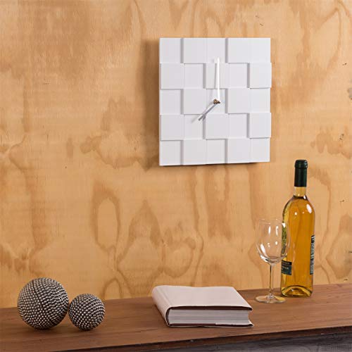 Orologio da Parete di Design 3D | 30x30x5cm (AxLxP) in MDF, Bianco, Decorazione da Parete, Orologio Quadrato
