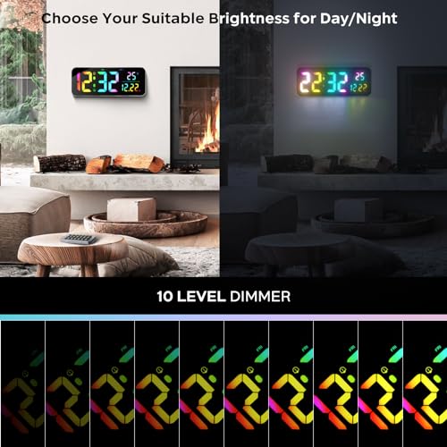 Orologio da Parete Digitale 25cmx 16cm Grande Sveglia Digitale Sveglia Digitale da Comodino, LED Orologio da Parete con Telecomando Dimmerabile Date Snooze 12/24 H per Soggiorno, Cucina, Casa, Ufficio