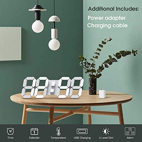 Orologio da parete digitale a LED 3D, orologio da parete elettronico, dimmerabile, luce notturna con USB, sveglia ricaricabile, visualizzazione data/temperatura, ideale per casa, ufficio, hotel