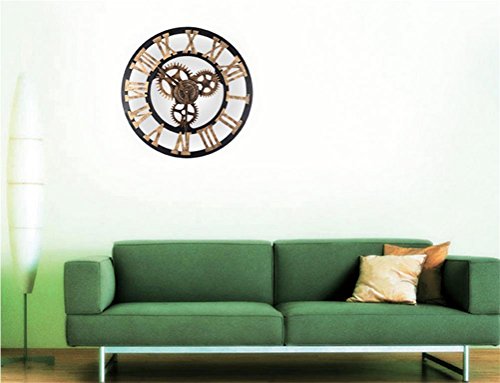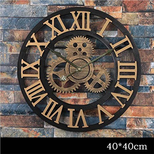Orologio da Parete in Legno 3D Vintage Europeo con Ingranaggi Numero Romani Industriale Decorativi Design Gigante Wall Clock
