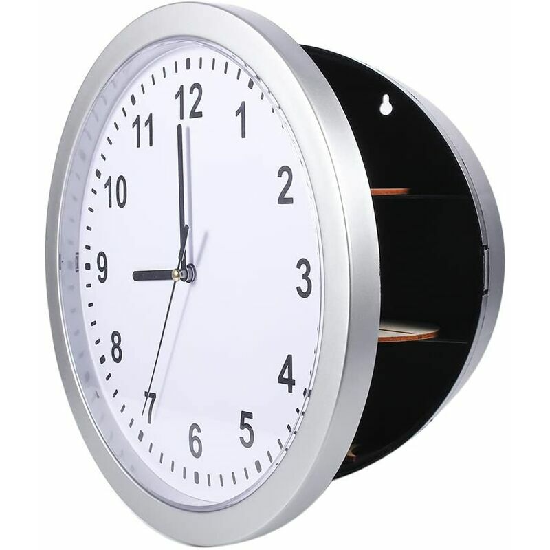 PROGETTATO CON SPAZI NASCOSTI - Il posto perfetto per nascondere i tuoi oggetti di valore è nello scomparto segreto dietro questo orologio. Include tre ripiani per riporre i tuoi oggetti di valore o anche denaro extra. L'orologio a batteria è facile da montare su qualsiasi parete. (Batteria non inclusa). Il design moderno completa qualsiasi arredamento della casa o dell'ufficio. Perfetto per conservare gioielli, contanti o carte di credito, ecc. Specifiche: Condizione: nuovo Materiale: ABS Colore: argento Dimensioni esterne: ca 25 * 7 cm / 9,8 * 2,8 pollici (D * H) Peso: circa 608 g La confezione include: 1 orologio da parete sicuro (senza batteria)