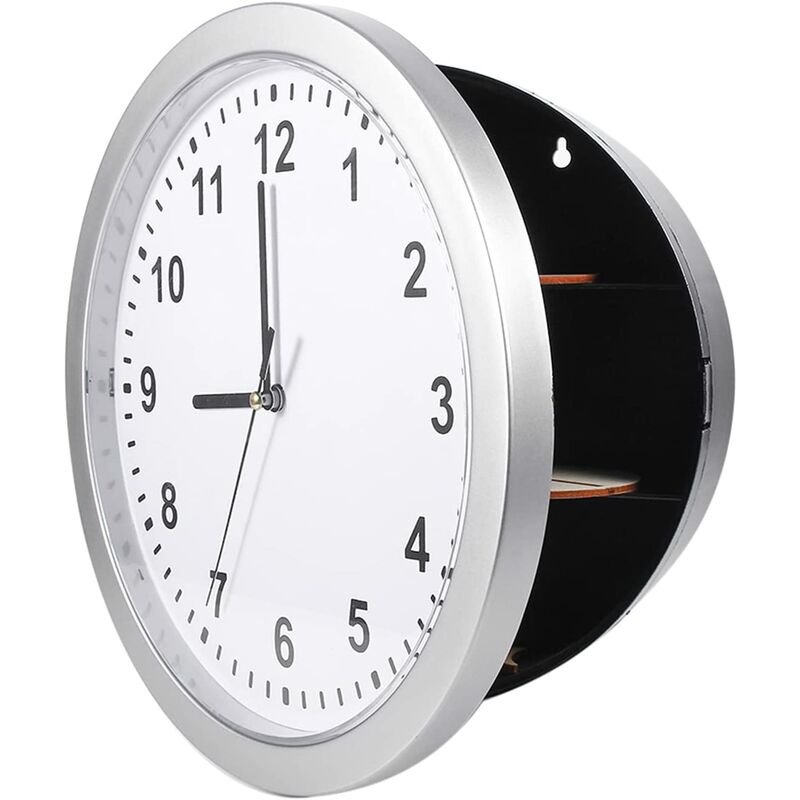 Orologio da parete - : l'orologio a batteria può essere facilmente installato su qualsiasi parete. Il design moderno completa qualsiasi arredamento della casa o dell'ufficio. Orologio da parete con spazio di archiviazione nascosto. 【Multifunzionale】: proprio come un piccolo oggetto misterioso in un film di spionaggio, questo orologio casual nasconde ordinatamente uno scomparto a cerniera per riporre oggetti di valore. 【Professionale Design】: design unico, lo spazio di archiviazione personale può contenere monete, gioielli, chiavi o carte d'identità, molto adatto per conservare gioielli, contanti o carte di credito, ecc. 【Conveniente】: il classico design in argento può essere sapientemente abbinati a varie decorazioni. Ha un orologio a cerniera e una cassaforte nascosta con 3 ripiani. 【Facile da usare】: installazione semplice, design moderno che si adatta a qualsiasi arredamento della casa o dell'ufficio. Dimensioni esterne: circa 25 * 7 cm / 9,8 * 2,8 pollici (profondità *