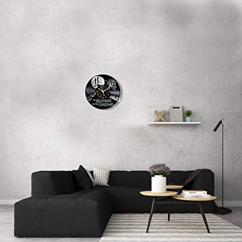 Orologio da parete in vinile The Nightmare Before Christmas, per Halloween, Natale, per lui/lei, decorazione vintage fatta a mano per la casa per soggiorno, camera dei bambini, 30 cm, nero (D-senza