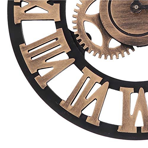 Orologio da parete vintage, orologio da parete fatto a mano rustico 3D Orologio da parete retrò con ingranaggi Grande ingranaggio Decorazioni in legno vintage per soggiorno/ufficio/bar(Oro 30 cm)