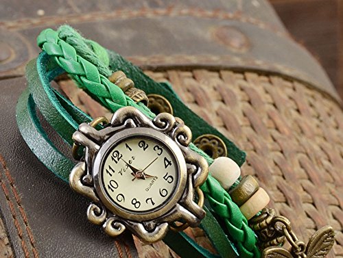 Da.Wa Orologio da polso, con bracciale in pelle intrecciata, stile rétro, da donna, con ciondolo a forma di farfalla