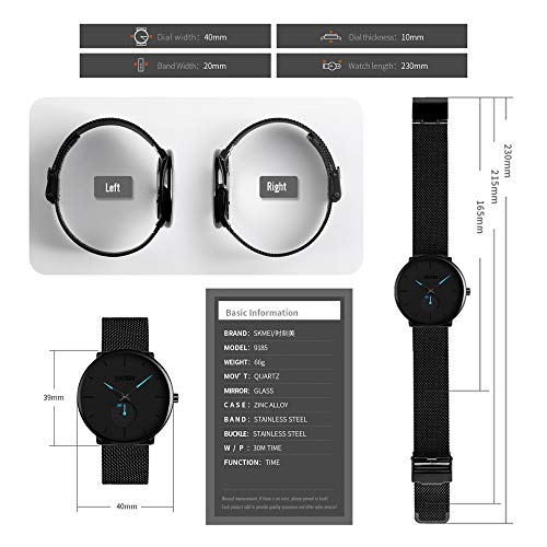 Orologio da Polso da Uomo, Ultra Sottile Moda Orologi al Minimalista Quarzo Classico Orologi Con Cinturino In Acciaio Inossidabile a Maglia per Attività Commerciale Casuale (Blu)