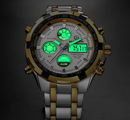 Orologio sportivo digitale al quarzo, analogico, da uomo, cronografo con grande quadrante, in acciaio INOX, orologio da polso impermeabile