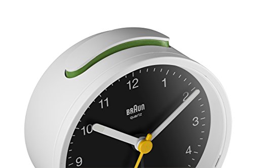 Orologio Sveglia Analogico Classico Braun con Snooze e Luce, Movimento al Quarzo silenzioso, Suono Sveglia Beep con crescendo, colore nero e bianco, modello BC12WB.