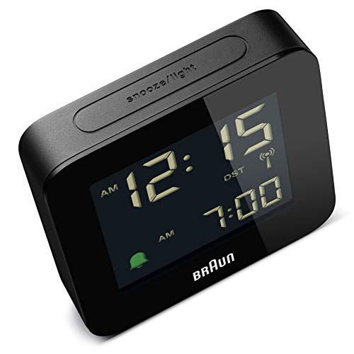 Orologio Sveglia Digitale Radio controllato Braun per Fuso Orario Europa Centrale (DCF) con Funzione Snooze, Display LCD, Funzione Quick Set, Suono Sveglia Beep con crescendo, Nero, BC09B-DCF.
