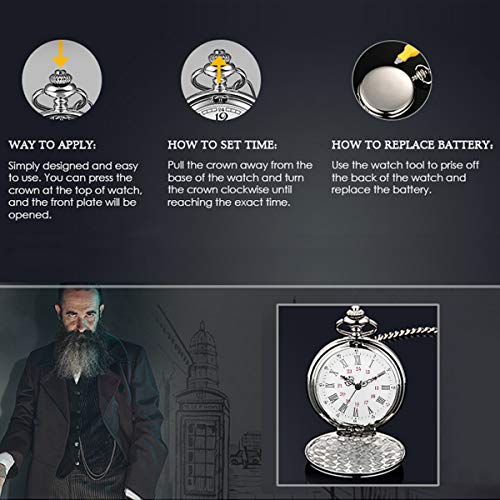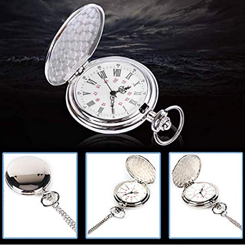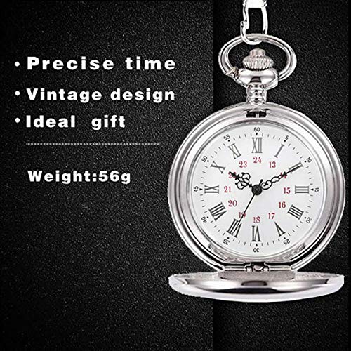 Orologio da taschino classico vintage, liscio, in acciaio, movimento al quarzo, con catena corta, unisex, regalo per compleanno, anniversario, Natale, festa del papà, color argento