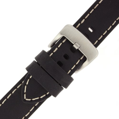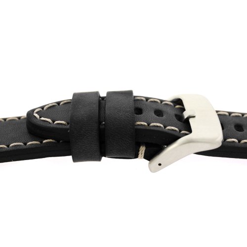 24 mm PANERAI Style Watch Band cinturino in vera pelle nera con cuciture bianche