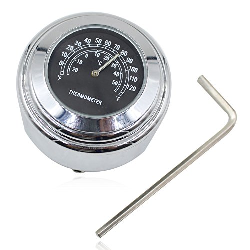 Orologio e termometro universale con quadrante nero per manubrio 22 mm e 25 mm di moto, cruiser e chopper Honda, Yamaha, Cafe Racer
