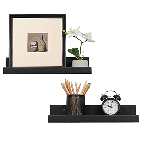 Set di 2 mensole per cornici per foto - Le dimensioni di ogni mensola sono di 38 cm (L) x 11,5 cm (W), il peso è di 400 g. La sporgenza viene fornita con un fermo anteriore per impedire la caduta degli oggetti immagazzinati