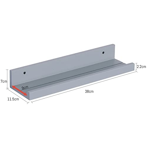 Set di 2 mensole per cornici per foto - Le dimensioni di ogni mensola sono di 38 cm (L) x 11,5 cm (W), il peso è di 400 g. La sporgenza viene fornita con un fermo anteriore per impedire la caduta degli oggetti immagazzinati