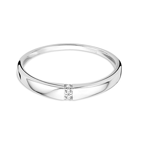 Orovi - Anello Donna Oro Bianco Vero 9KT 375 con Diamanti Centrali Naturali. Anello Solitario Anallergico con Brillanti. Il perfetto Anello di Fidanzamento.