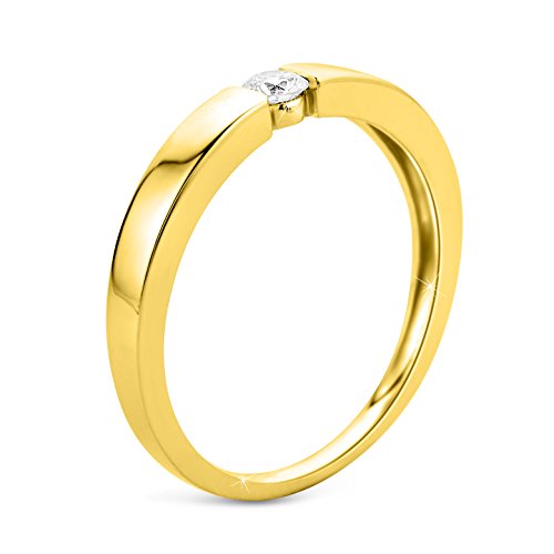 OROVI Anello di fidanzamento da donna, in oro giallo, 9 carati (375), con brillanti da 0,10 carati, Oro, Diamante
