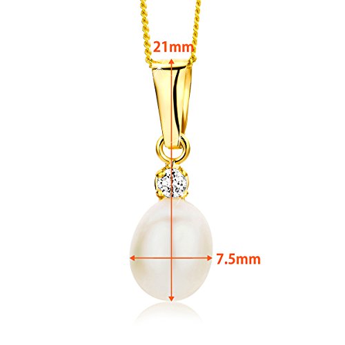 Orovi Collana Pendente Donna con Perle d'acqua dolce Bianche e Zircone taglio brillante in Oro Giallo 9 kt 375 catena 45 cm