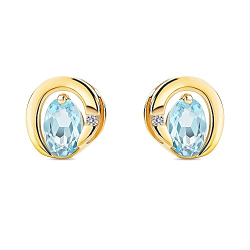Orovi Gioielli da donna 0,02 ct diamante oro giallo con gemma ovale/pietra portafortuna novembre topazio blu e diamanti brillanti orecchini in oro 9 carati (375), oro, Topazio