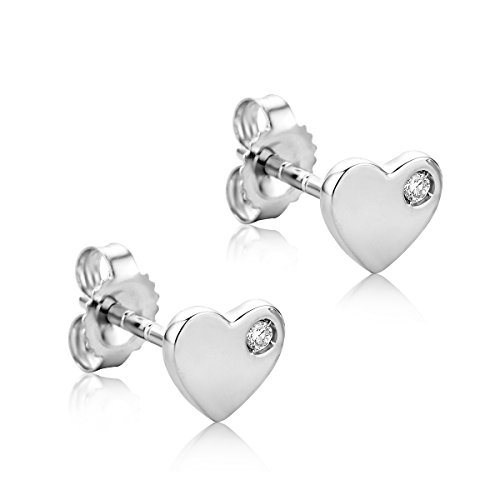 Orovi Orecchini Donna Cuore Piccoli a Lobo in Oro Bianco con Diamanti Taglio Brillante Oro 9 Kt / 375