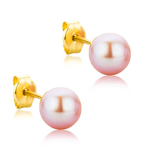 Orovi Orecchini Donna a lobo con Perle d'acqua dolce Rosa in oro Giallo 9 kt 375