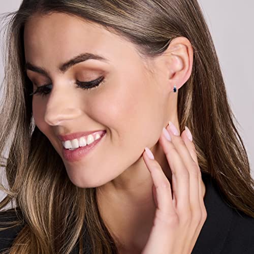Orovi Orecchini Donna Piccoli a Lobo in Oro Bianco con Diamanti Taglio Brillante e Zaffiri Blu Taglio a Goccia Ct 0.62 Oro 9 Kt / 375