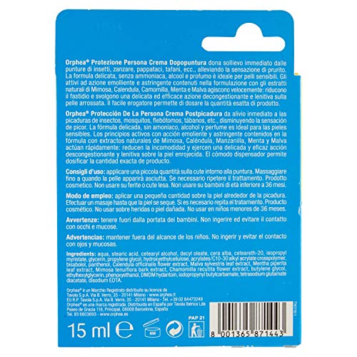 Orphea, Crema Dopopuntura Inodore, Sollievo Immediato Dalle Punture di Insetti, Formula Inodore, Con Estratti Naturali, 15 ml