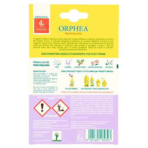 4x Orphea Salvalana Foglietti per Cassetti e Armadi Protegge Lana e Fibre Naturali al Profumo di Lavanda Maillette - 4 Confezioni da 12 Foglietti Ognuna