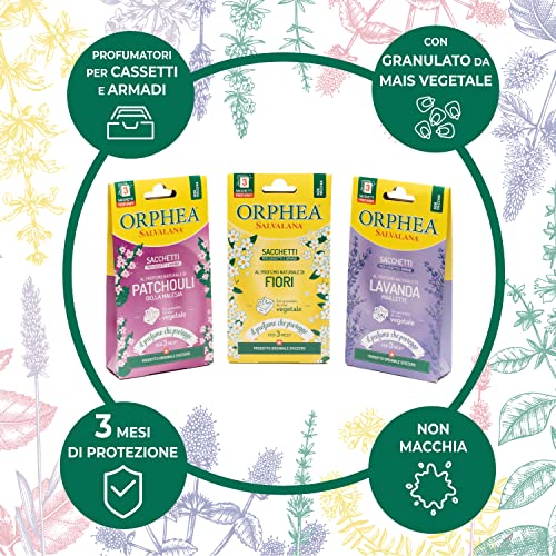 Orphea Salvalana, Sacchetti per Cassetti e Armadi al Profumo Naturale di Patchouli della Malesia, Confezione da 3 pezzi