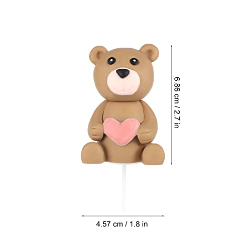 Orsacchiotto per Torte, 7x4,5 cm Cuore Rosa Cake Topper Compleanno Decorazioni per Torte con Orsacchiotto per Baby Shower Festa di Compleanno Anniversario Decorazione (Marrone)