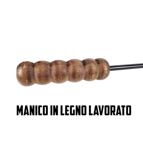 “Padella GIREVOLE per castagne ” in ferro TRAFORATO con manico in legno, dotata di manico anti scottatura in legno che consente l'utilizzo in sicurezza durante la cottura!!