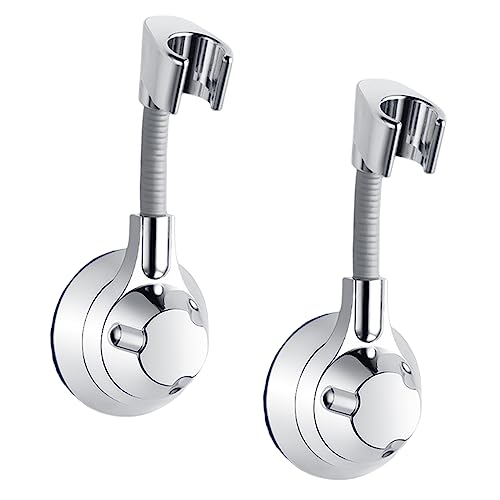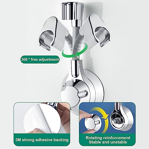 Orssmigs 2 Pezzi Supporto Soffione Doccia Supporto Doccia Universale Staffa Doccia Adesiva Upporto per Doccia Regolabile a 360° Porta Soffione Adesivo per Doccia (Argento)