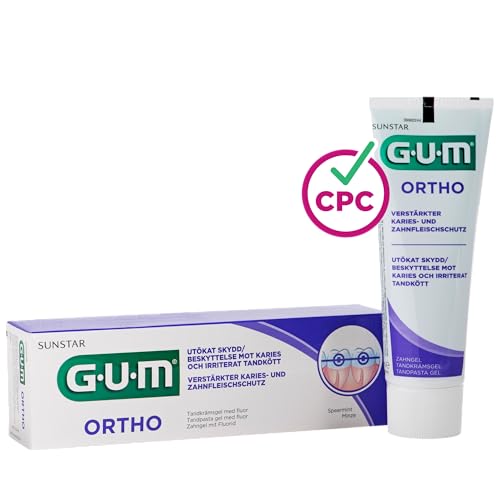 GUM ORTHO Toothpaste | specially designed for wearers of braces | reduces plaque build-up | strengthens enamel | spearmint flavour | 6 x 75