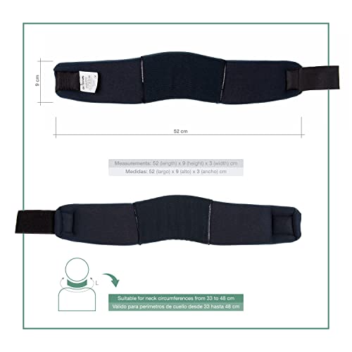 Facile regolazione: si adatta alla maggior parte degli utenti coprendo il contorno del collo da 33 cm a 48 cm. Si applica e si rimuove con un sistema di velcro, che è molto semplice per il paziente. Il rivestimento è in cotone, rimovibile, elastico e lavabile a 30 gradi.