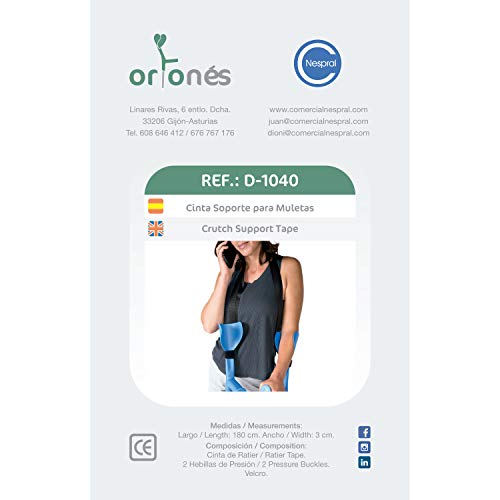 ORTONES | Fascia di supporto per stampelle | Nastro di fissaggio stampelle | Accessori per avambraccio | Morsetto a gomito | Taglia unica